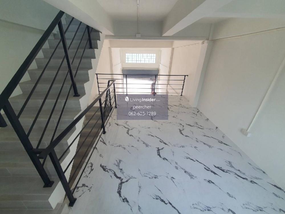 วัสดุที่ใช้มีคุณภาพ: พื้นปูกระเบื้องแกรนิตโต้ทั้ง 3 ชั้นลายสวยงาม, บันไดปูกระเบื้อง, ราวบันไดเหล็กแข็งแรง
