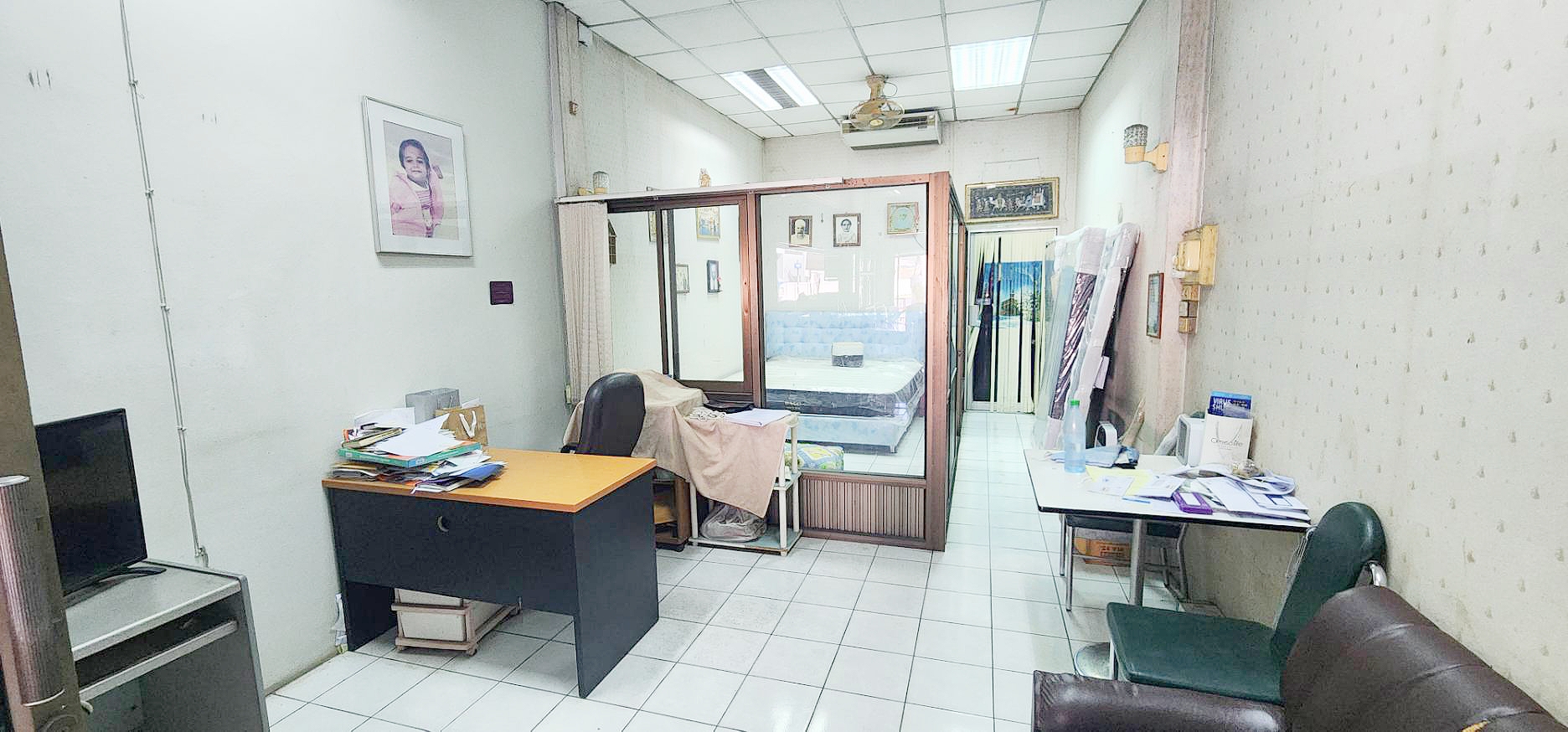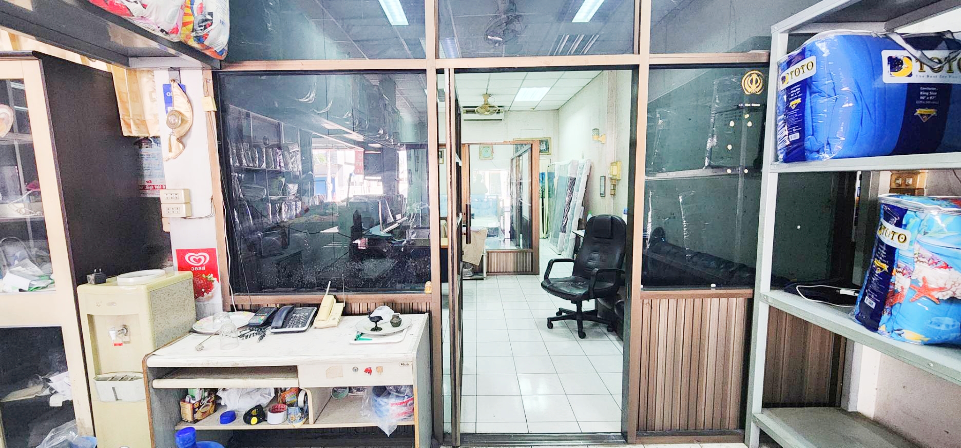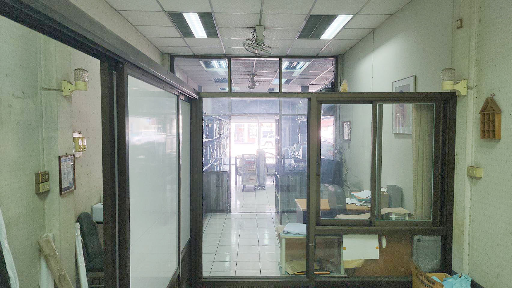 ✨✨ชั้นล่าง-ประกอบด้วย 1 ห้องทำงานกั้นห้องกระจกเรียบร้อย 2 ห้องน้ำ 2 ห้องครัว และพื้นที่หลังบ้าน พื้นชั้นล่าง- ปูกระเบื้องเซรามิค เพดานตีฝ้า ประตูหน้าบ้าน เหล็กม้วน